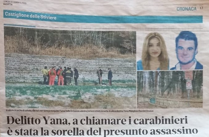 Il primo febbraio 2023 è stato rinvenuto dai Carabinieri di Castiglione delle Stiviere il corpo della giovane Yana, sotterrata ai piedi di alcuni alberi al confine con Lonato del Garda.